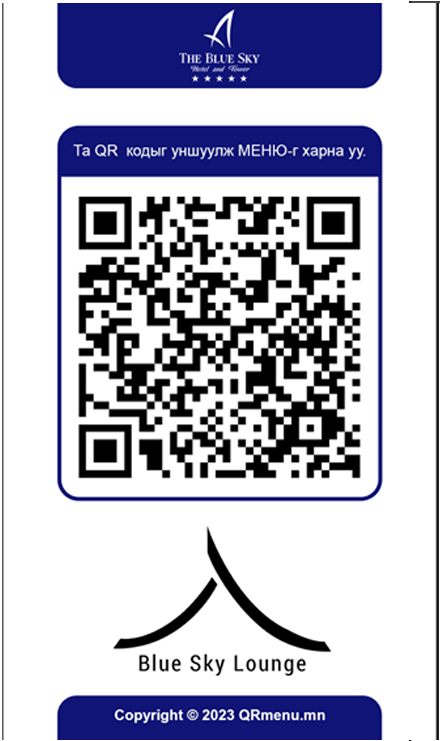 Блю Скай цамхагийн хамгийн дээд 2 давхарыг хамран орших Блю Скай Лоунж-д та бүхэн чадварлаг ахлах тогоочийн бэлтгэсэн зоог, мэргэжлийн бартендерийн бэлтгэсэн амтат коктейль, олон төрлийн уух зүйлсийн сонголтуудаас сонгон, Улаанбаатар хотыг хамгийн төв цэгийн хамгийн өндөр хэсгээс цонхоороо тольдон харангаа мартагдашгүй дурсамжит үдшийг өнгөрүүлэх боломжтой.